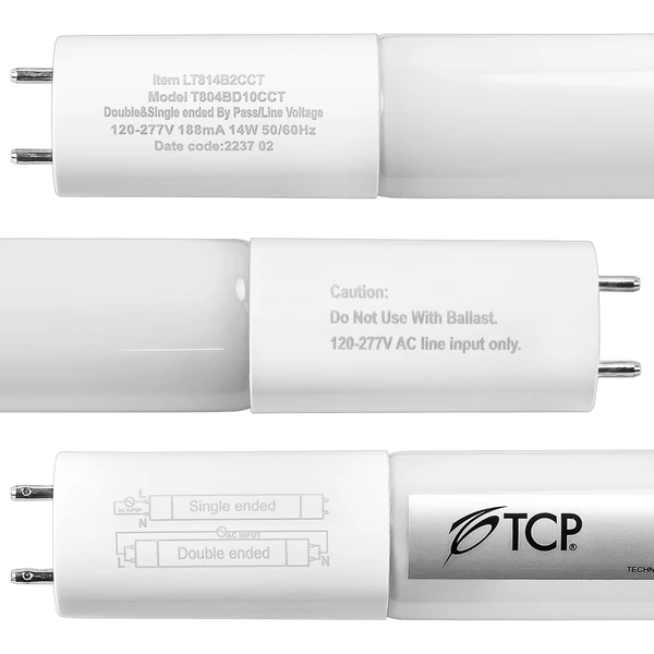 Choose the color temperature that best suits your environment with these selectable LED T8 tubes by TCP. These non-flickering tubes use 50 percent less energy and last longer when compared to traditional 32-Watt fluorescents. These type B tubes operate by bypassing the ballast, reducing maintenance and eliminating ballast replacement costs.