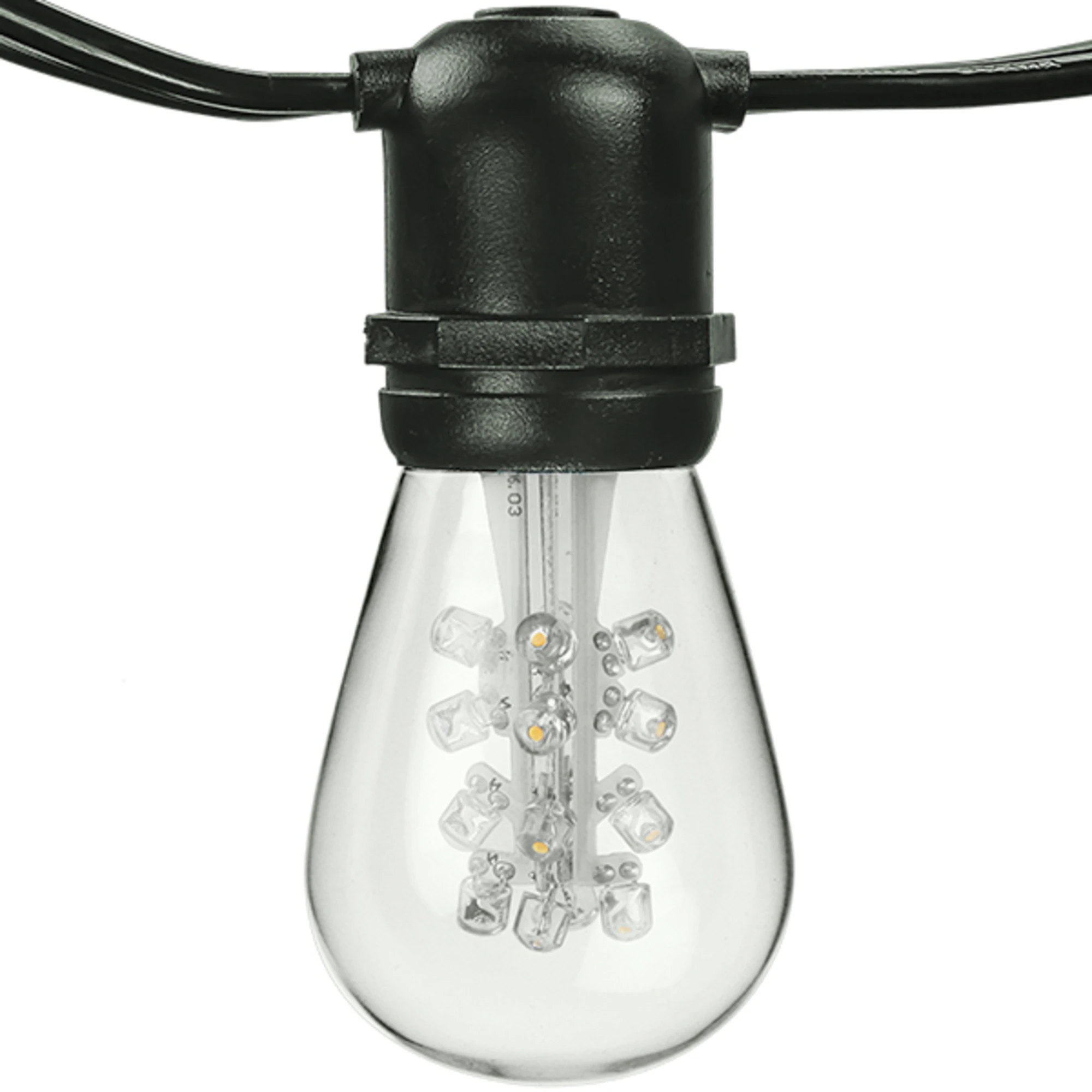 Decorate large event spaces easily and efficiently with this kit that includes 25 energy-saving LED S14 bulbs and a durable 52 ft. patio string light.