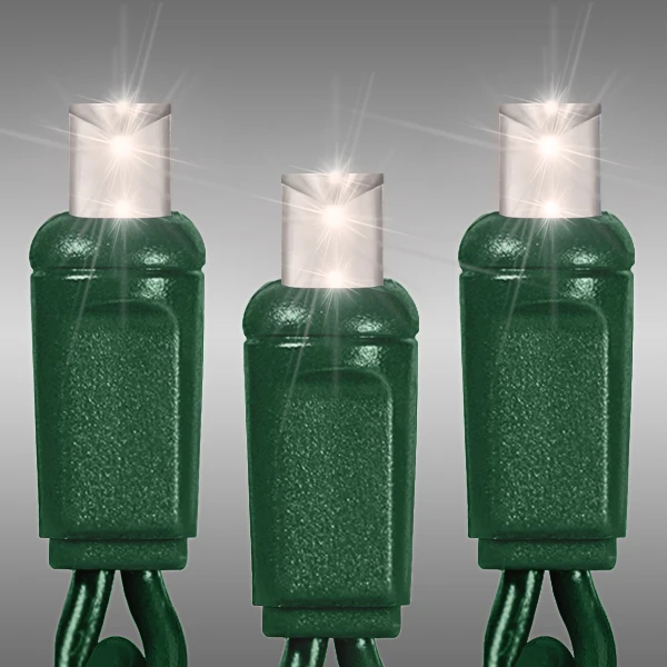 This Christmas Lite Co. string light (CMS-70WA-4GTW) emits true white illumination matched to a standard 5000K CCT (similar to our daylight white bulbs). Designed with a concave lens, these 5 mm. wide-angle bulbs are 25% brighter than standard-shaped mini light strings and shine equally brilliant from any viewing angle.